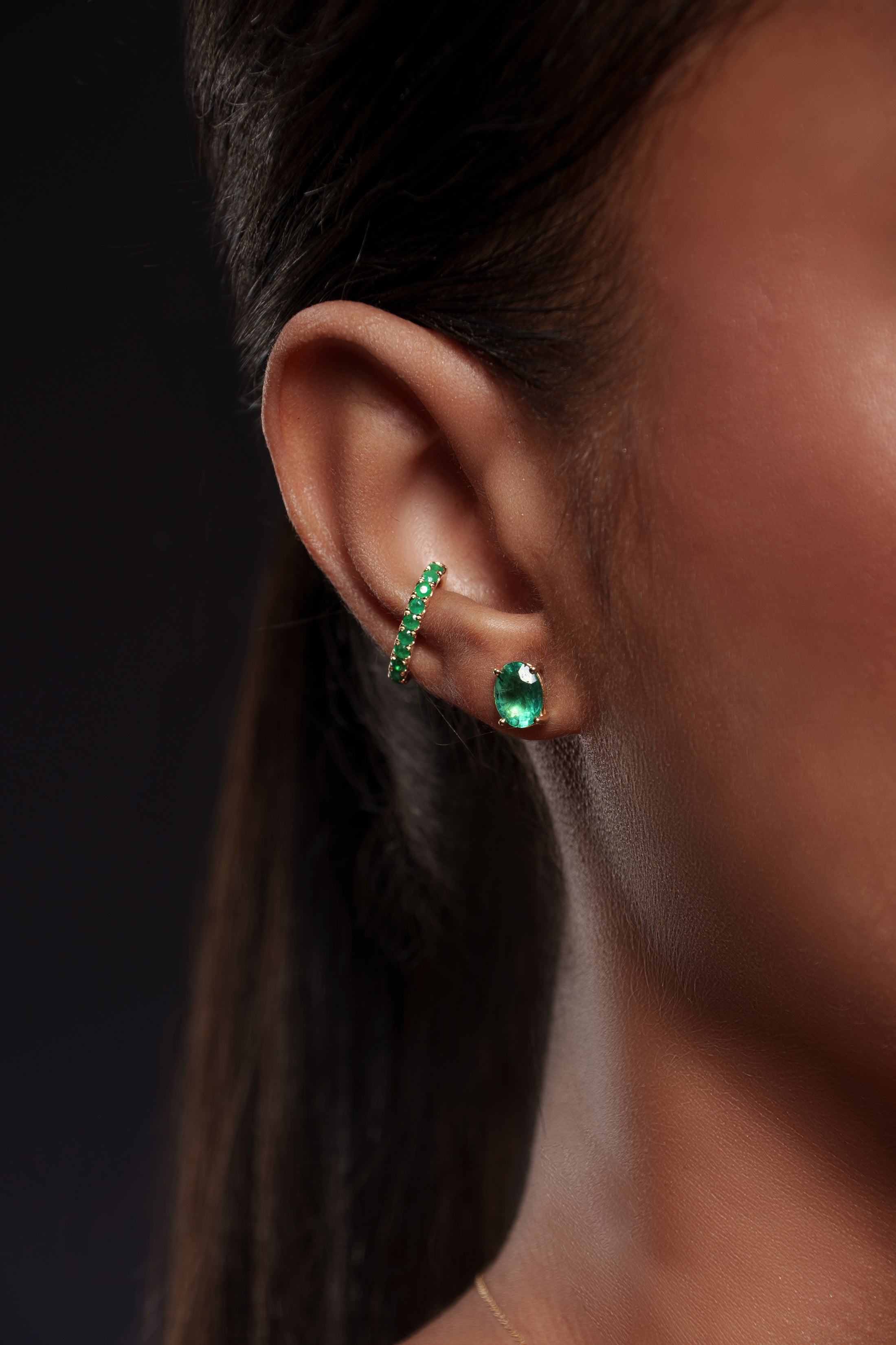 14K Gold Diamond and Emerald Multi Stone Climber Earring