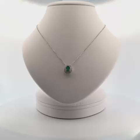 18K WG Oval Emerald Diamond Pendant